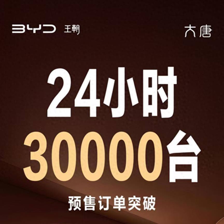 在本届北京车展上,比亚迪王朝网首款D级旗舰SUV,大唐EV开启预售。24小时后,比亚迪王朝网销售事业部总经理路天公布了一组数字:订单突破30000台。
