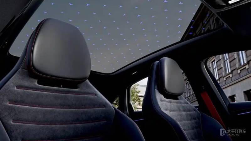 配置上,车辆可选装SKYCONTROL全景天窗,玻璃可在毫秒间切换透明与不透明状态,分为9个独立可控区域,搭配可选装的环境氛围灯,夜间可呈现162颗可变色发光星点。车内配备11种高分辨率环境风格,可选装带声音可视化的主动环境氛围灯,搭配可选装Burmester®4D环绕音响系统。